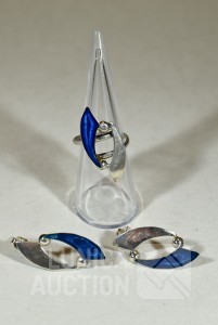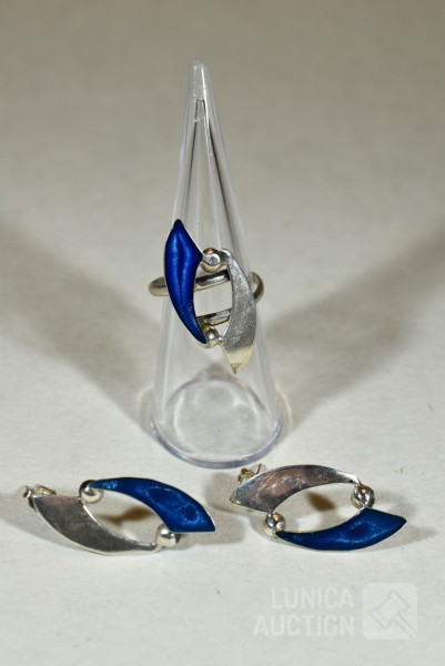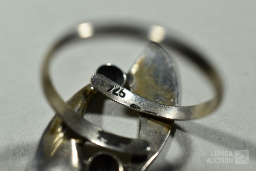 gemerkt met 925. Afmeting Ring 12x30 mm, oorstekers 13x28 mm. Totaal gewicht ca. 4,0 gram. Ringmaat 18mm/variabel.
