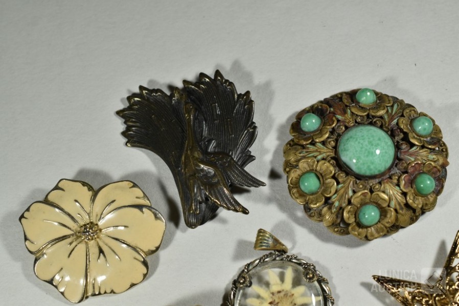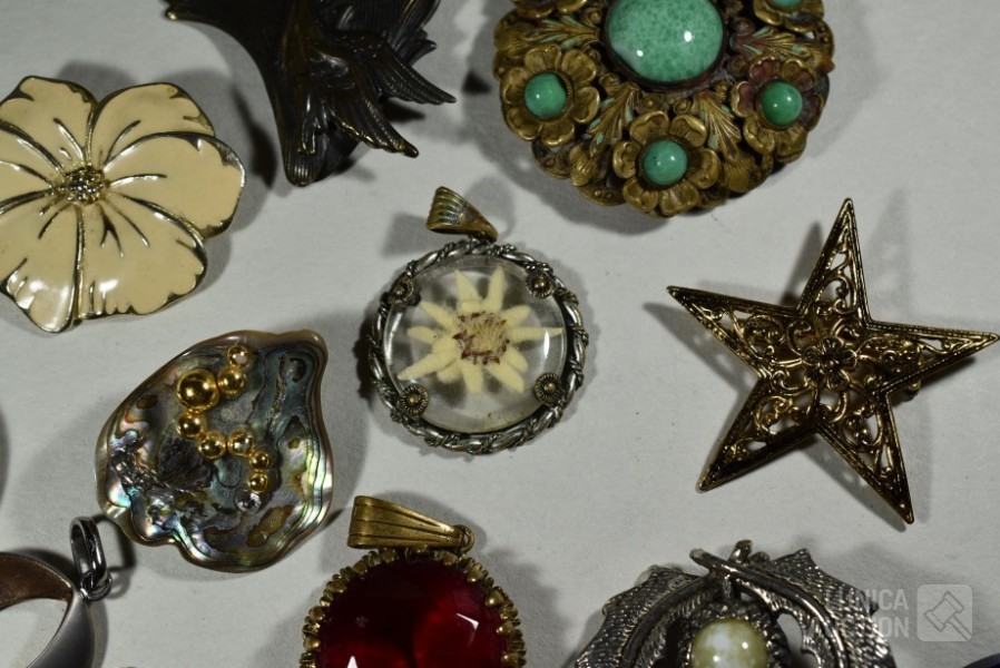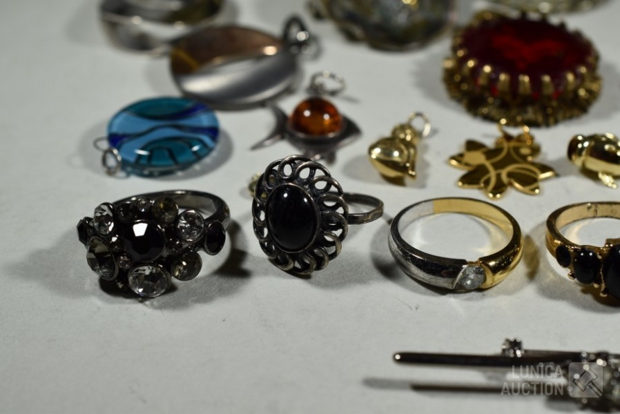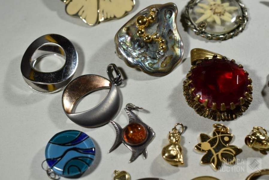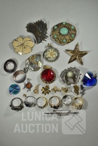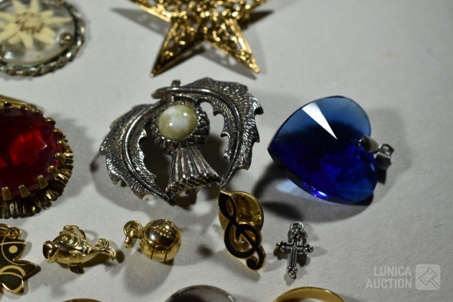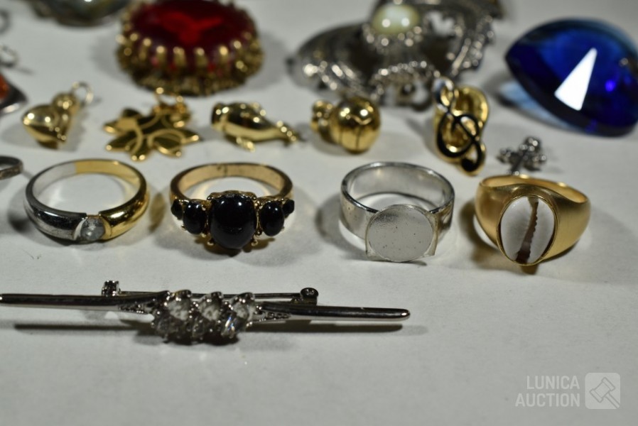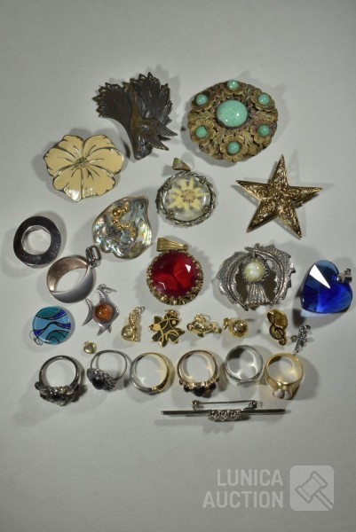 O.a. broches, hangers, bedels, ringen, enz. Diverse materialen en modellen.