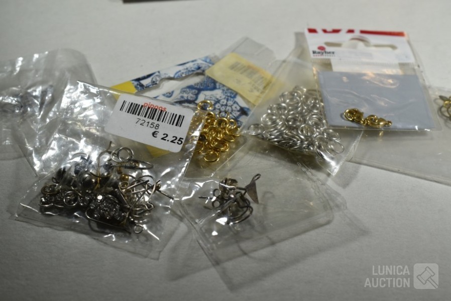 Hoofdzakelijk oorhangers, weinig sets, diverse materialen en modellen. Inclusief diverse toebehoren in zakjes. Voor de hobbyist.