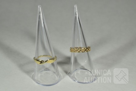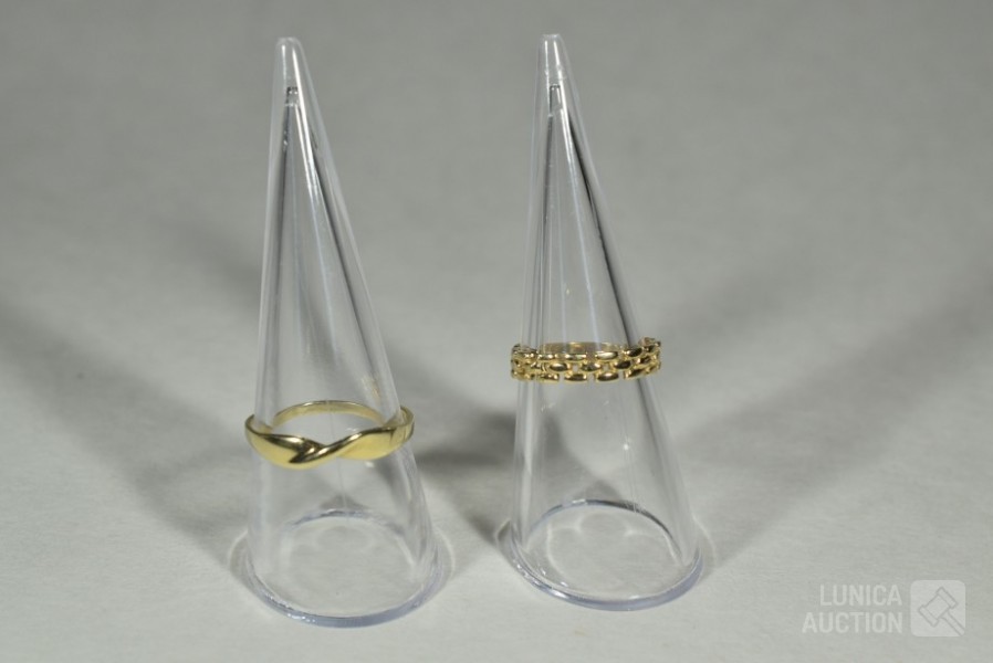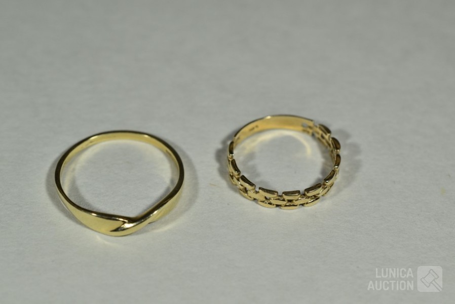 Gemerkt met 585. Totaal gewicht 3,0 gram. Ringmaat 16,5 mm en 18,5 mm.