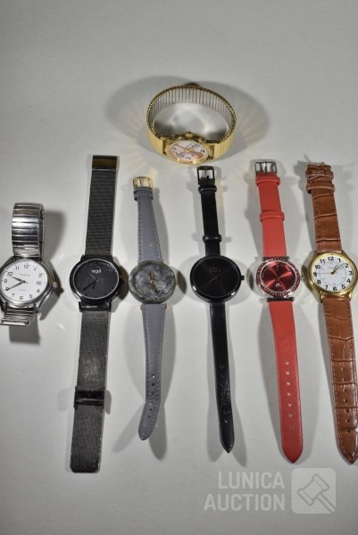 O.a. More Stories, Regal, Little Miss fabulous, Moretime (defecte horlogeband), VIP quartz horloges . Alle horloges staan stil, niet getest.