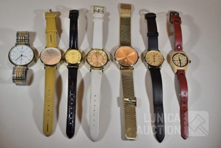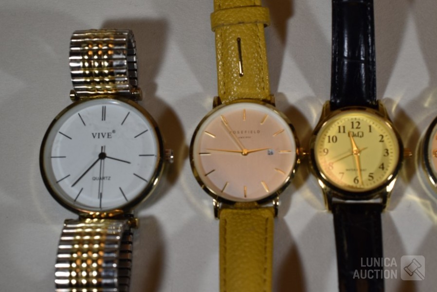 O.a. Regal, Rosefield AMS/NYC, VIVE. Deze horloges staan stil, niet getest. Timeboo bamboe, 2x Q&Q, True Spirit. Deze horloges zijn werkend, niet getest.
