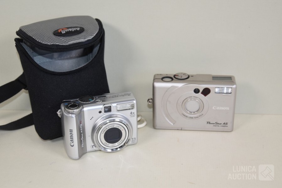 Canon Powershot A570 IS, werkend, niet uitgebreid getest PC 1225; Canon Powershot A5, PS1010. Zonder batterij