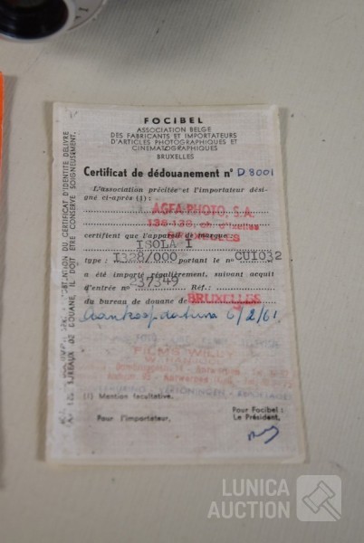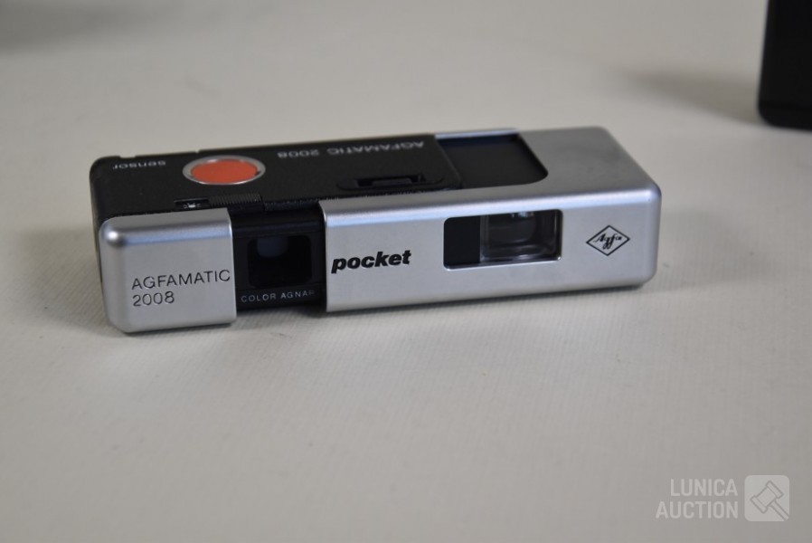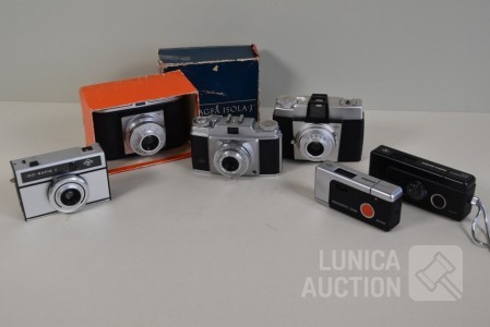 o.a. AGFAMATIC 5008 macro pocket; AGFAMATIC 2008 pocket; ISO Rapid 1; ISOLY; ISOLA I met originele verpakking, gebruiksaanwijzing en inklaring douane Brussel uit 1961; Silette Pronto