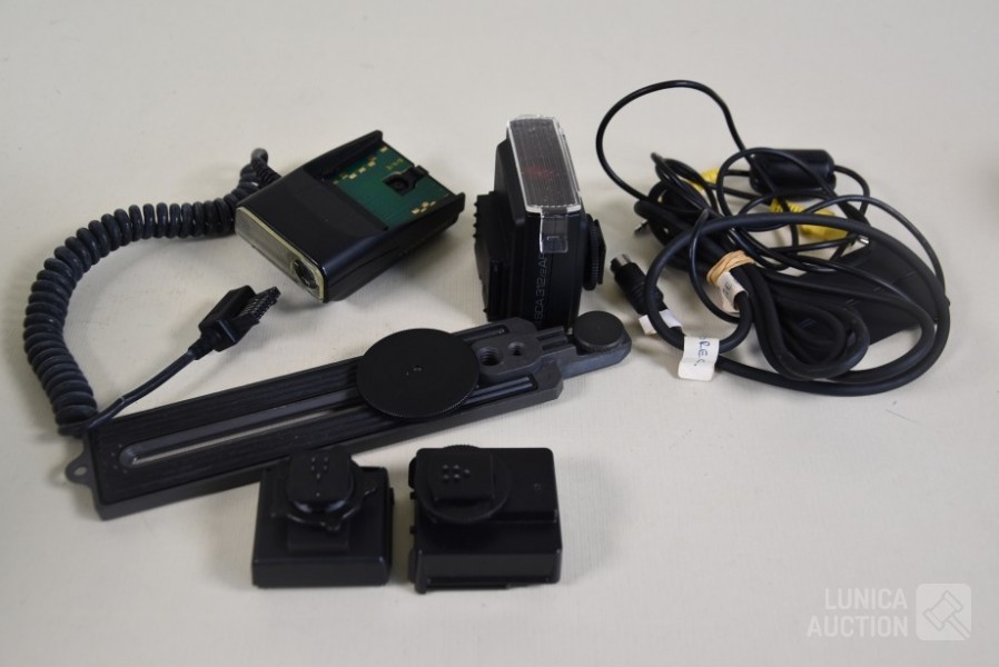 Inclusief flitslamp METZ 40MZ-2 system SCA3000 en diverse toebehoren. Inclusief fototas ROWI. Lader van camera ontbreekt.
