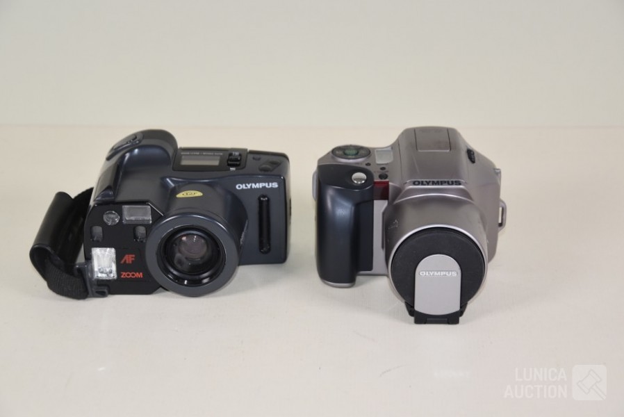 Olympus IS 200 met AF zoom 28-110 mm lens; Olympus AZ-300 super zoom met 38-105 mm lens