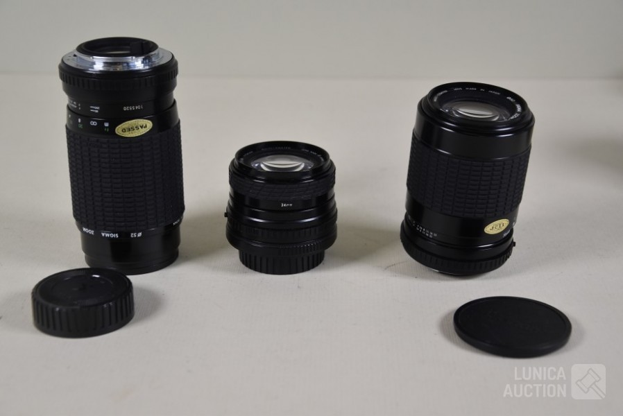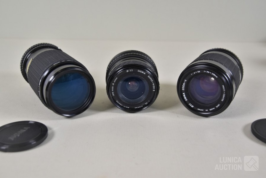 O.a. SIGMA super-wide II, Ø52 mm, 1:2.8 f=24 mm; SIGMA zoom-k, Ø52 mm, 1:4-5.6 f=70-210 mm; SIGMA zoom, Ø52 mm, 1:4.5-5.6 f=80-200 mm;
