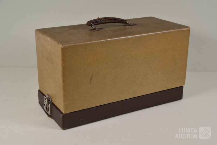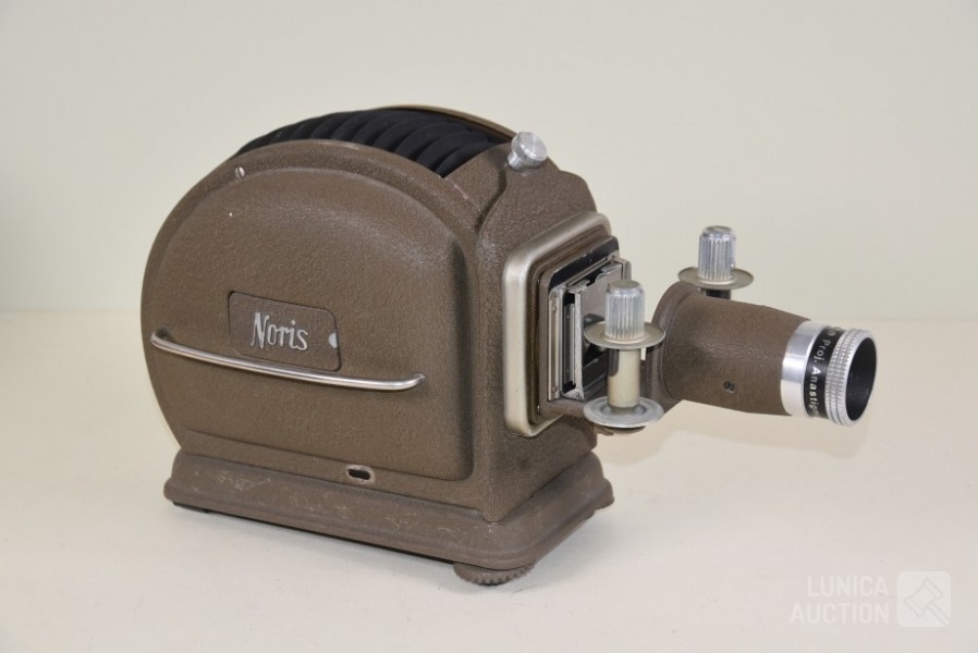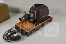 Met Plankar Anastignat 1:2.9 F=105 mm. Geschikt voor 35 mm film en dia's, in koffer. Aansluitstekker moet worden vervangen.