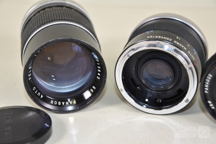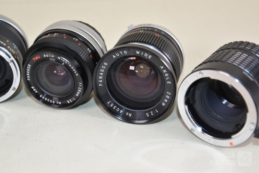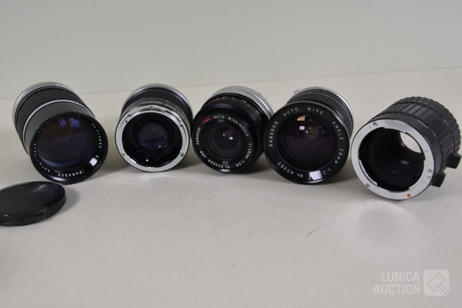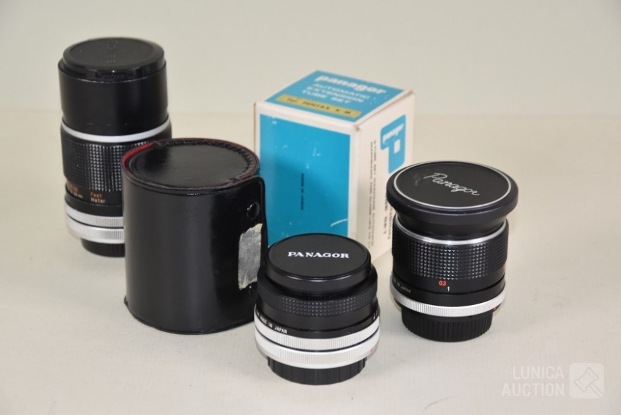 O.a. PANAGOR PMC f=28mm 1:2.8 Ø 49mm; PANAGOR AUTO wide angle 288 mm 1:2.5; PANAGOR Auto macro converter FD; PANAGOR Automatic extension tube set voor Pentax K/m 20 mm en 36 mm; PANAGOR auto tele f=135 mm 1:2.8 Ø 55 mm.
