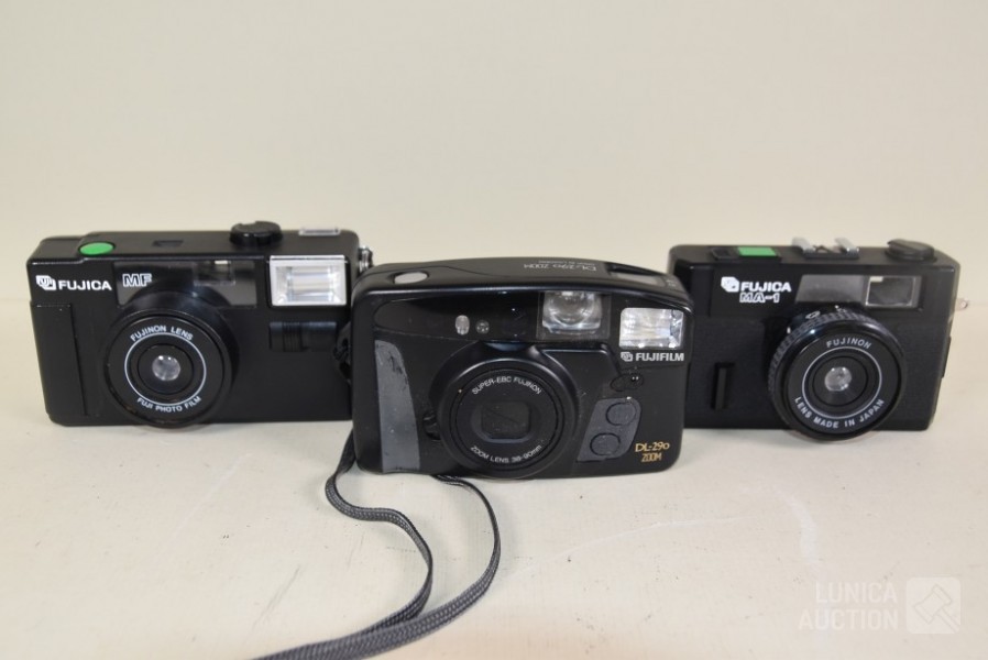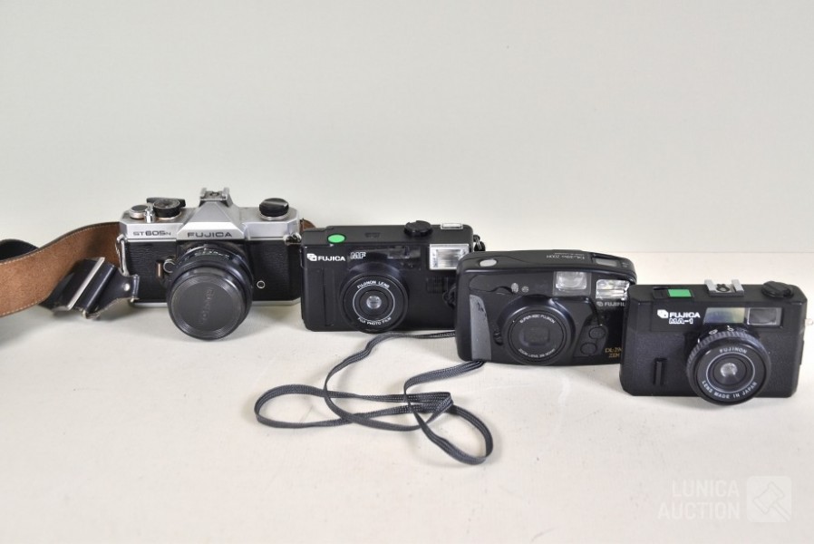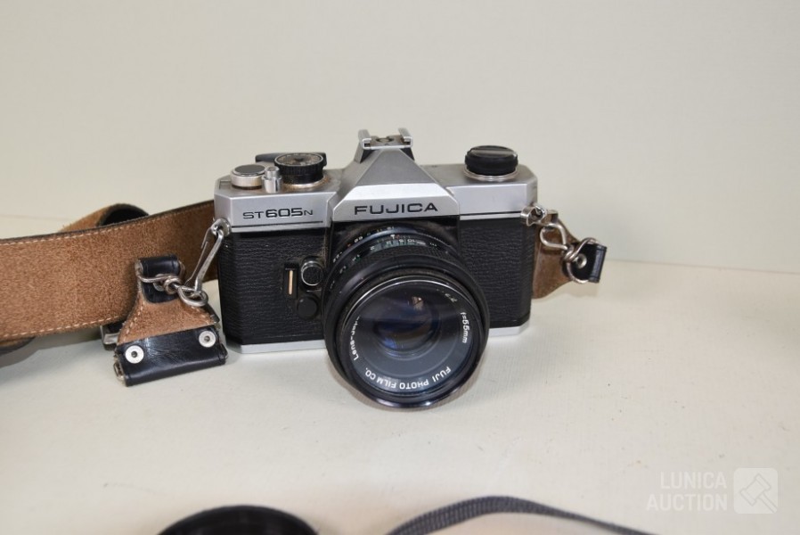 O.a. analoog model MF; MA-1; ST605N met objectief Fujinon1:22 f=55 mm en izumar uv filter 49mm; DL-290 zoom