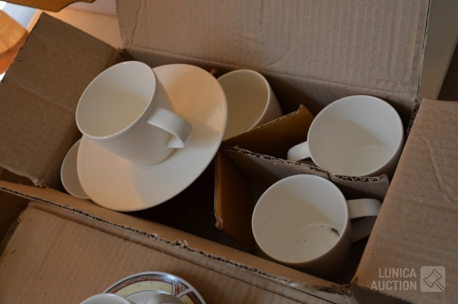 o.a. kop en schotels; BONE CHINA, NEW YORK; diverse modellen; ca. 28 stuks