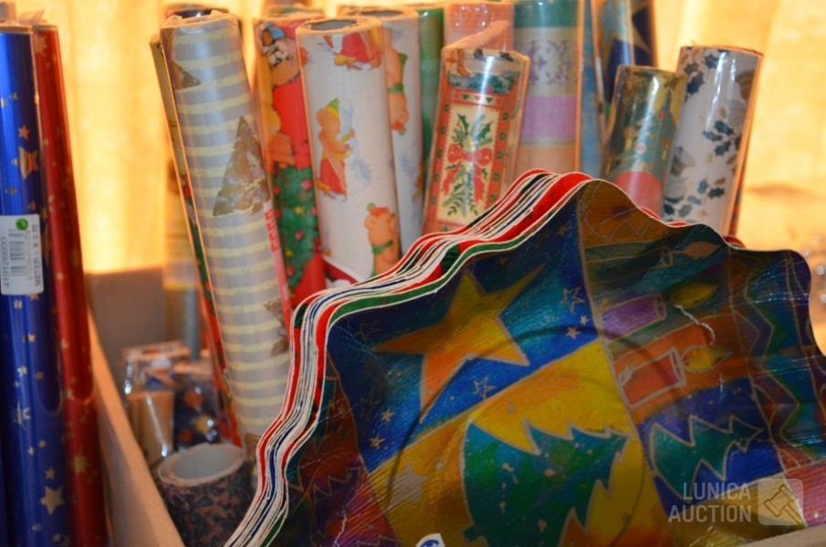 deels in originele verpakking. o.a. kaarsen, kerstbeelden, cadeaupapier enz.