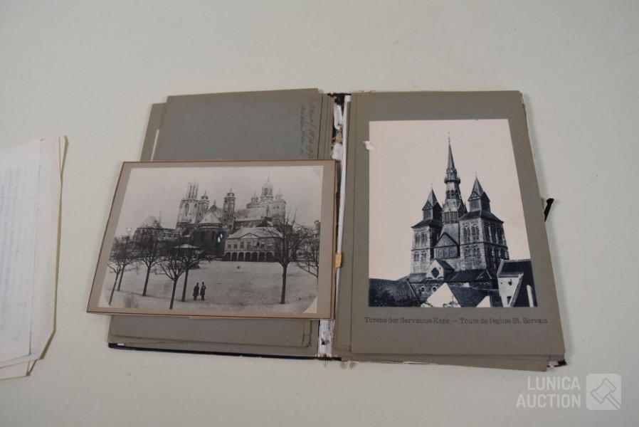 Het betreft ca. 23 oude foto's, plaatjes van "Maastricht en Kanne" o.a. periode '14-'18 . Op achterzijde van veel foto's staat meestal uitleg van de voorstelling.
