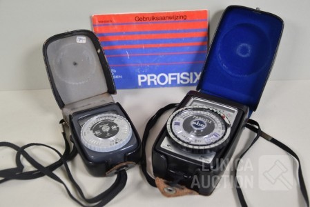 O.a. Gossen Profisix SBC met gebruiksaanwijzing; Gossen sixtar. In etui. Niet getest, batterijen leeg.