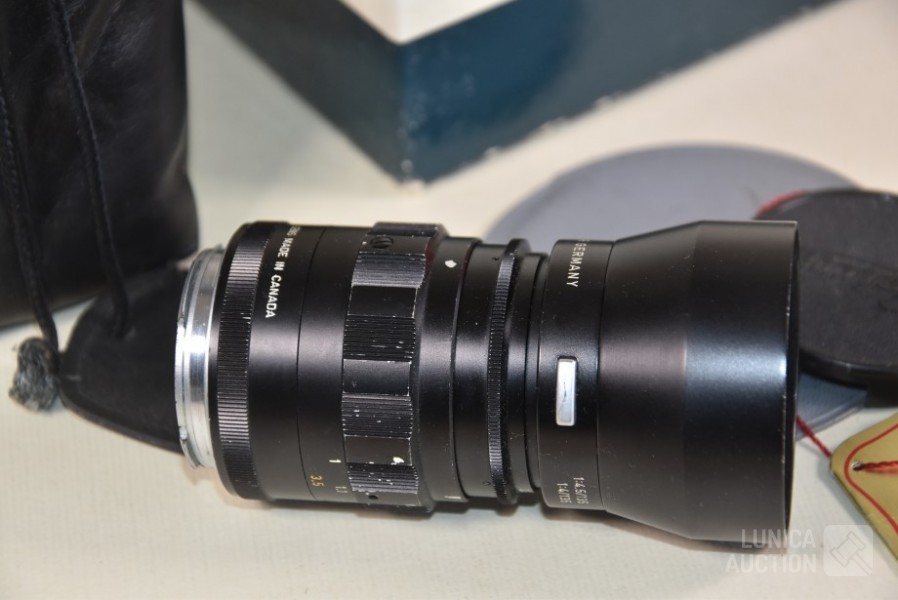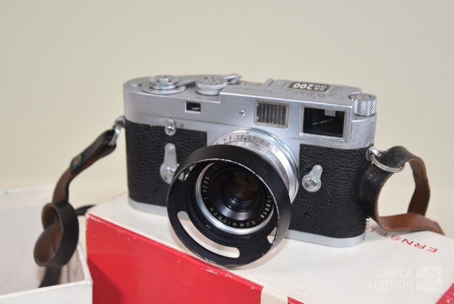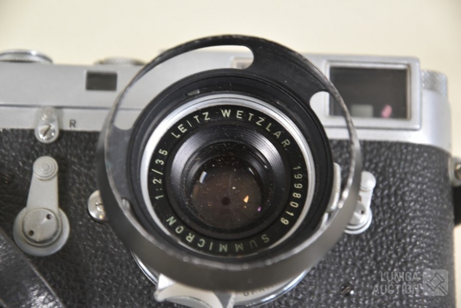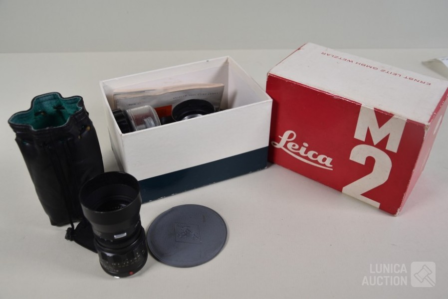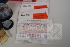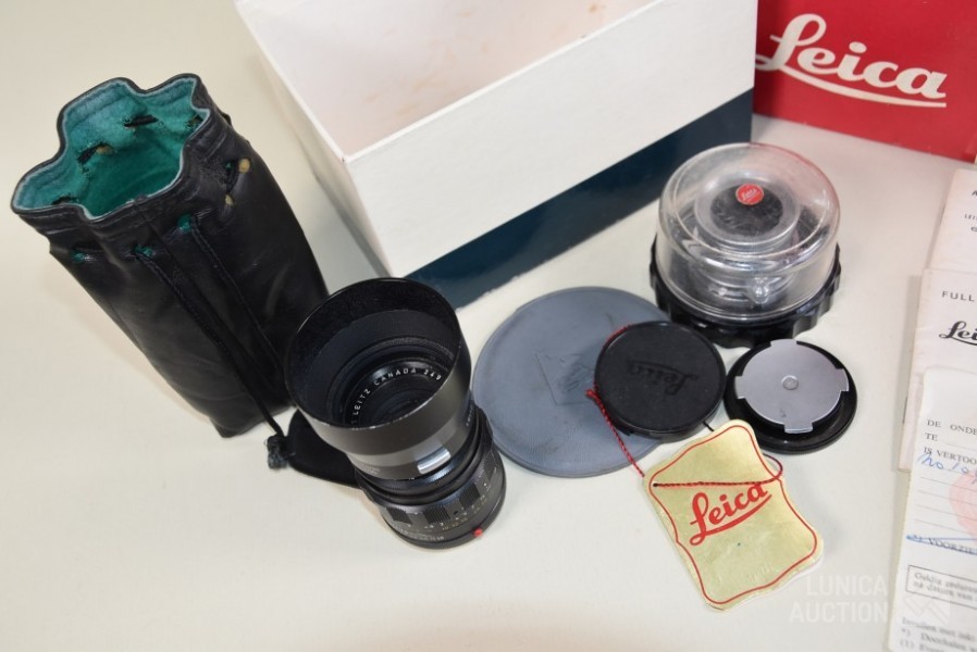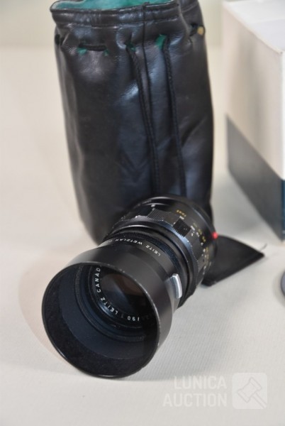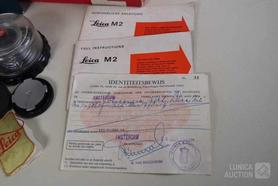 Inclusief fototas, gebruiksaanwijzing, fototas, en ID bewijs uit 1964. Losse objectieven Leitz Canada Tele Elmarit1:2.8/90 en Leitz Elmar f=5 cm 1:3.5. op toestel zit objectief Leitz Wetzlar summicron 1:2/35