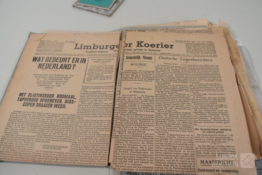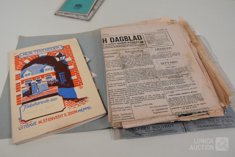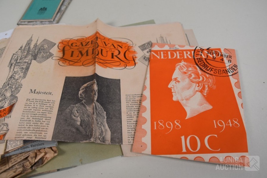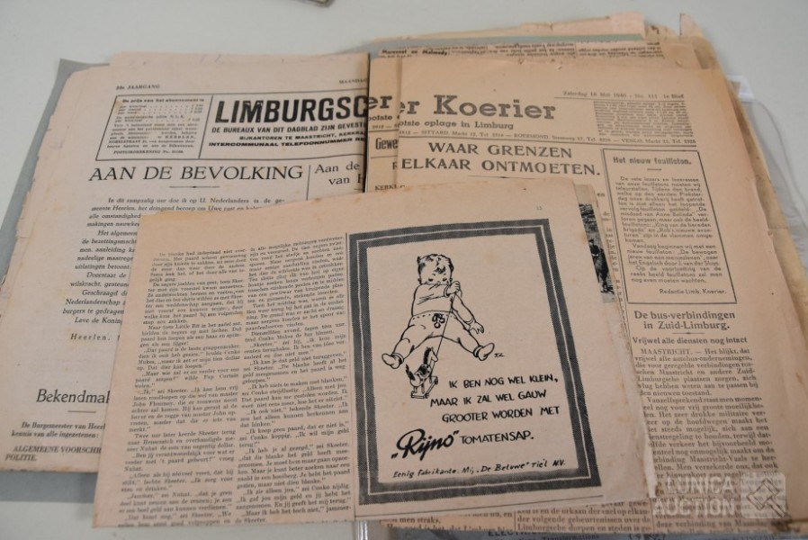 O.a. oude kranten uit periode 1940-1949; Motorrijders instructie en postdienst, jaren '50; "Geïllustreerd Het Leven"1922; Gazet van Limburg , oude krantenknipsels, "PTT bedrijfsbanden" september 1948 enz.