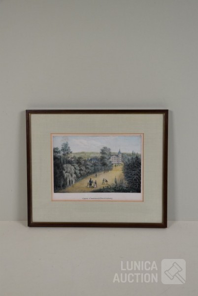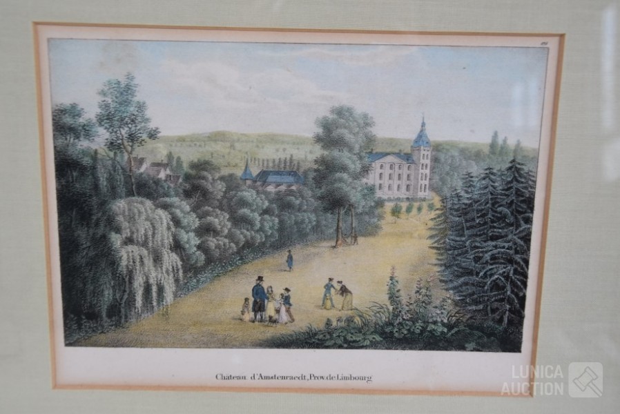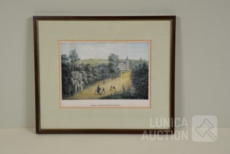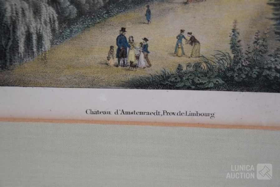 Uitgave Jobard et Madou. Met de hand gekleurd. Ingelijst, achter glas. Afmeting 34x28 cm.