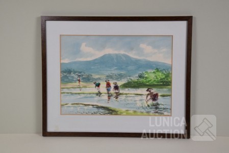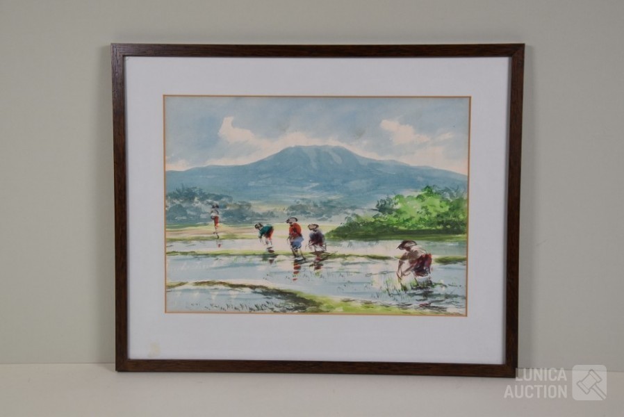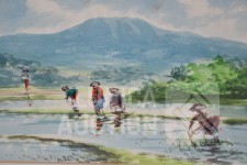 "arbeiders in rijstvelden"niet gesigneerd