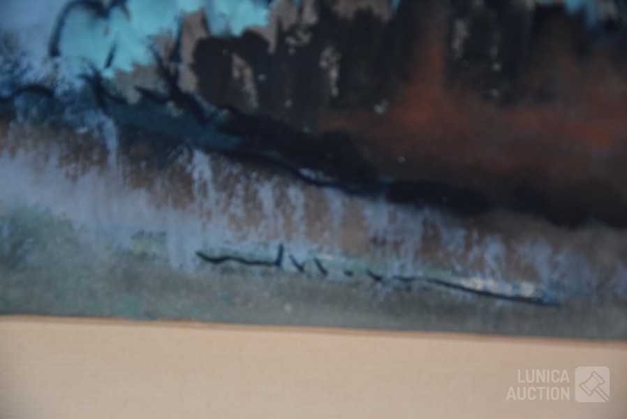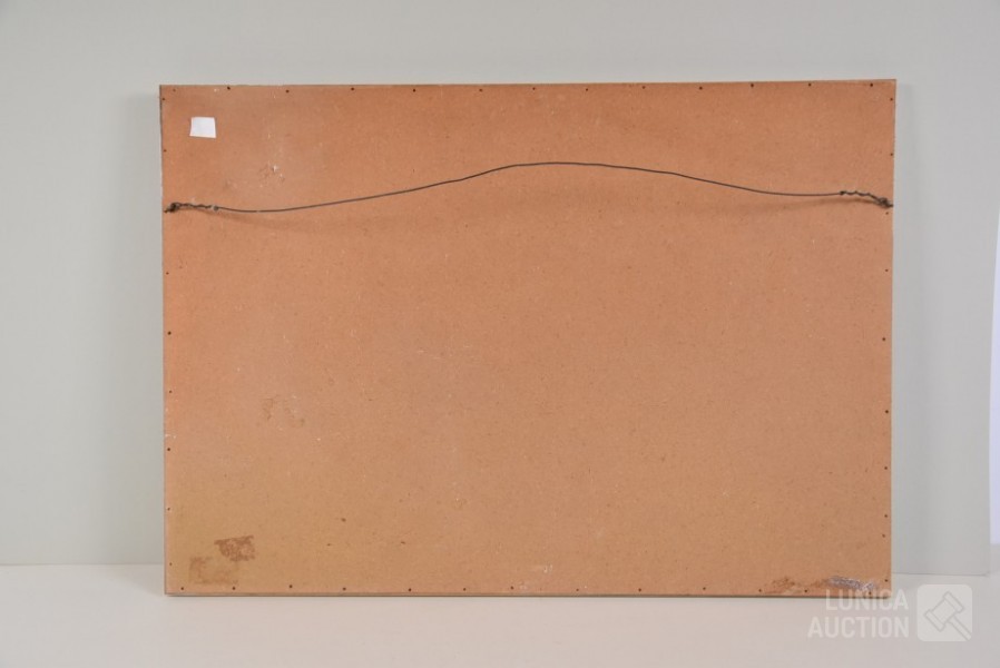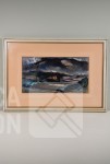 Ingelijst, achter glas. Afmeting 70x50 cm.