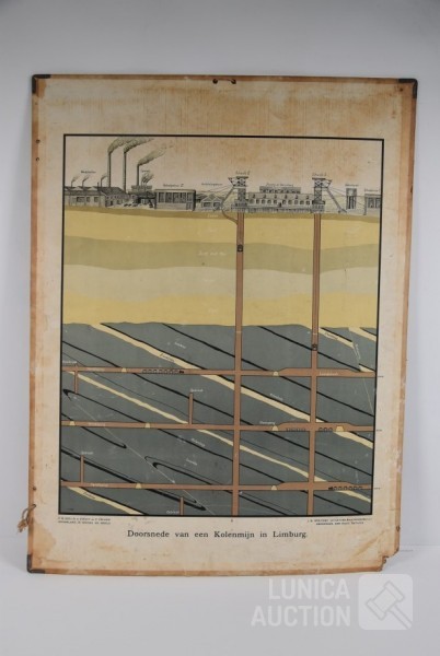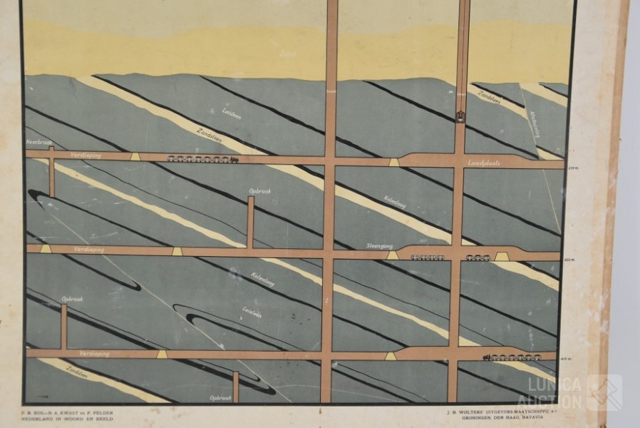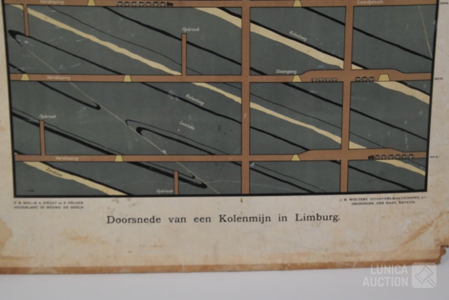 Op de achterzijde een doorsnede van een kolenmijn. Uitgave Wolters Groningen. Afmeting 85x66 cm