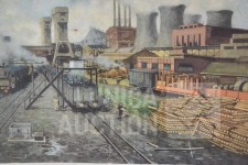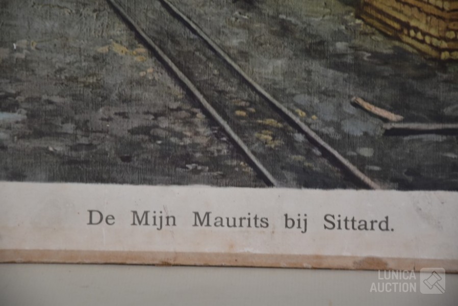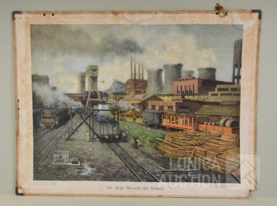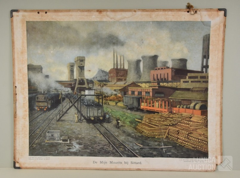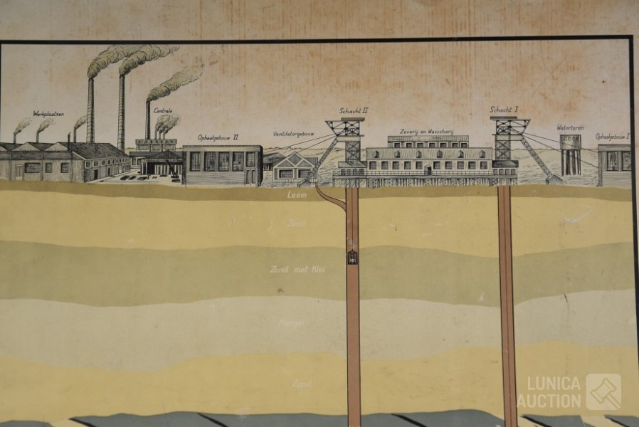 Antieke schoolplaat kolenmijn
