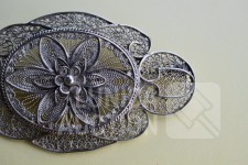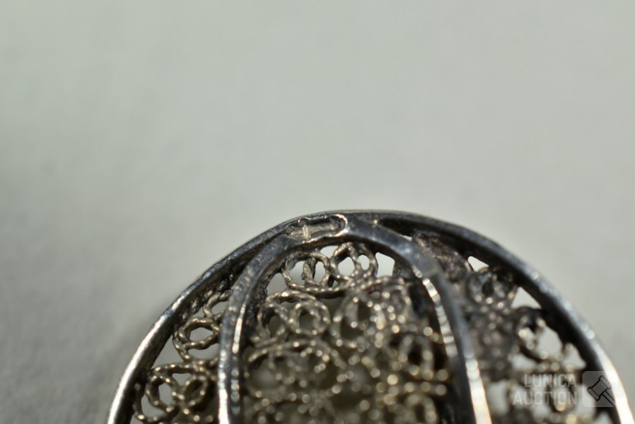 Gemerkt met zwaard. Zilvergehalte niet leesbaar. Gewicht 14,6 gram. Afmeting 72x41 mm