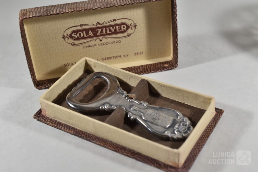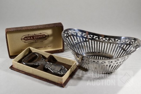 Klein bonbonmandje, afmeting (bxh) 14x7 cm., niet gemerkt; Flessenopener, in doosje, SOLA 90 D