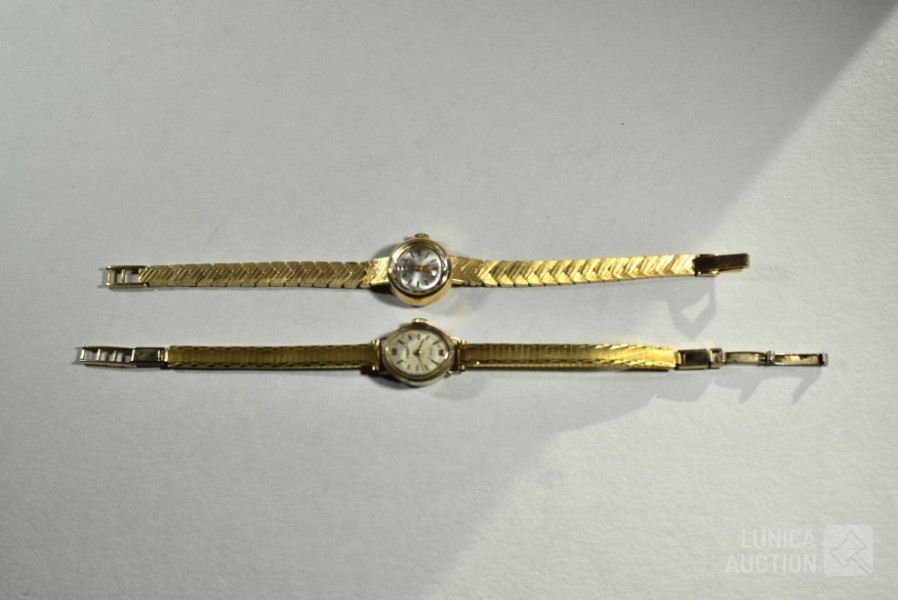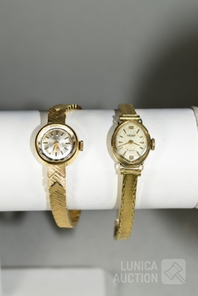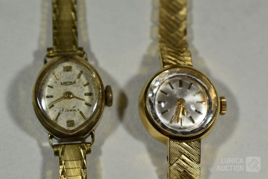 ARLY 17 jewels incabloc met "gold filled" 10 microns horloge band ; Lincoln 17 jewels met doublé horloge band. Werkend, niet uitgebreid getest. Met gebruikerssporen.