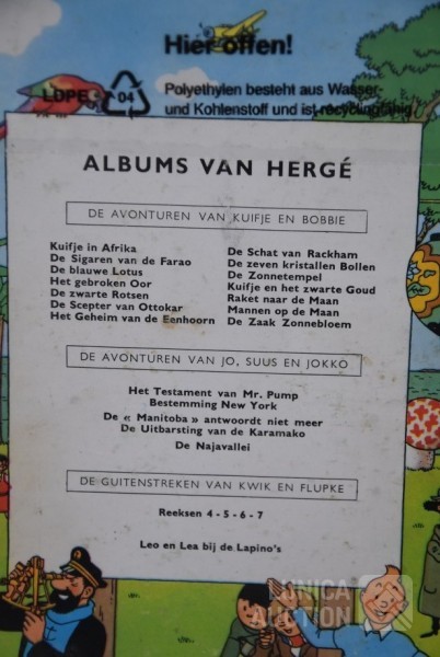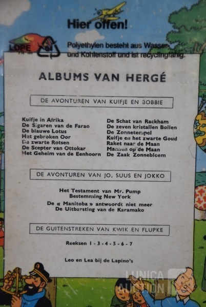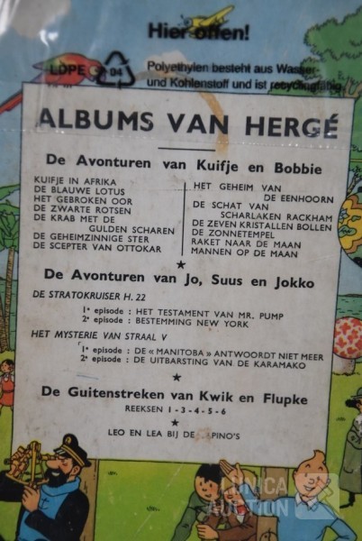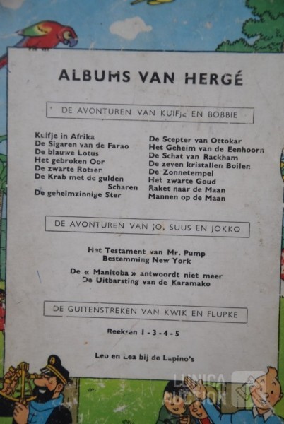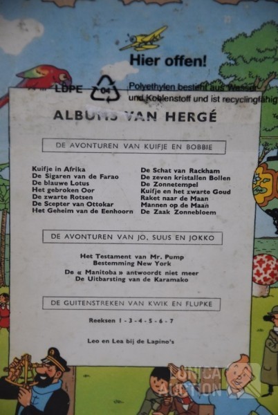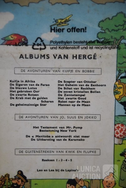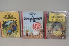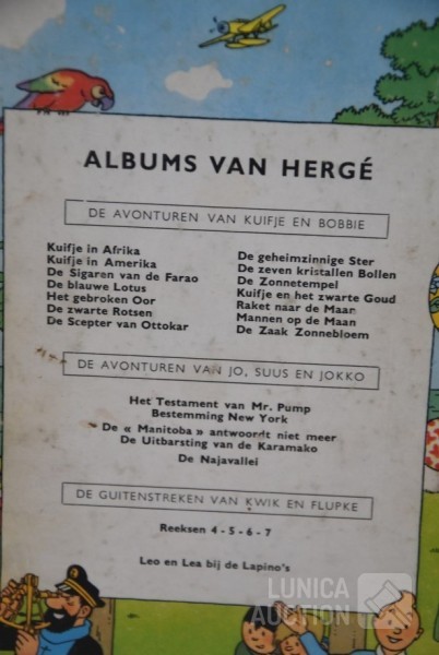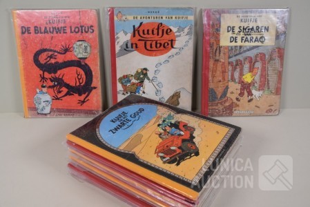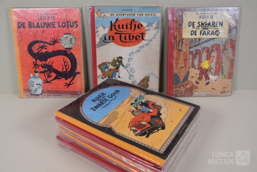 O.a. titels."de zaak zonnebloem", "de blauwe Lotus", "kuifje in tibet", "De sigaren van de farao", "de krab met de gulden scharen", "de schat van scharlaken rackham", "de zeven kristallen bollen" enz. Zie foto's van voor en achterzijde van de stripboeken. Met gebruikerssporen.