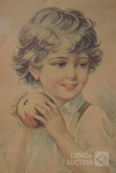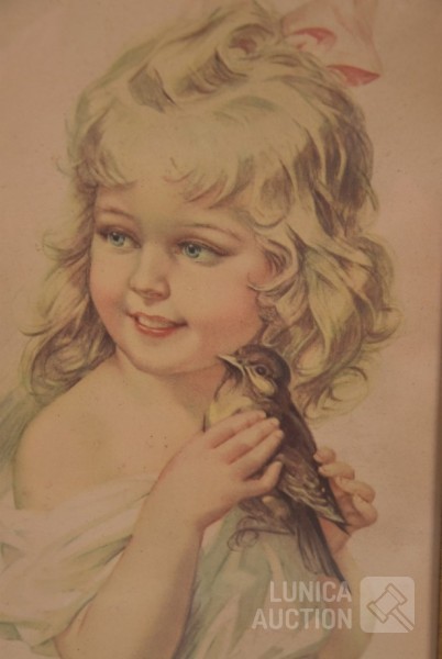Ingelijst, achter glas. Afmeting 24x45 cm.