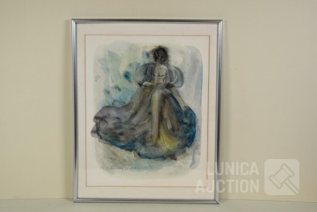 Gesigneerd L.O. Ingelijst, achter glas, afmeting 40x50 cm