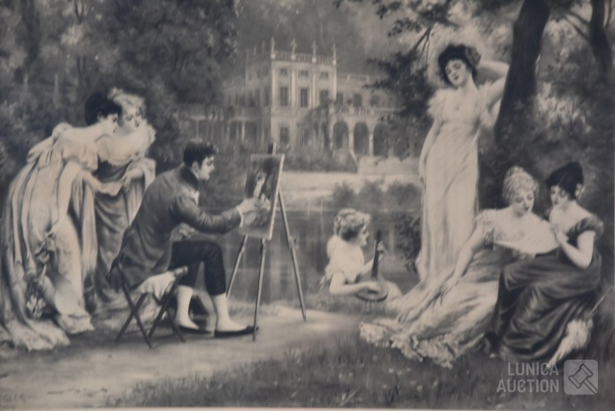 Lithografie van Leopold Verger, Parijs; Mooi ingelijst, achter glas. Afmeting (bxh) 80x70 cm