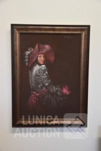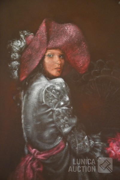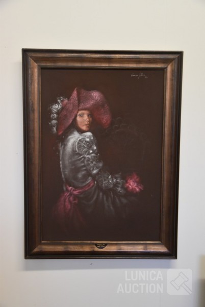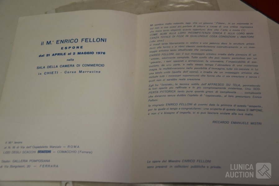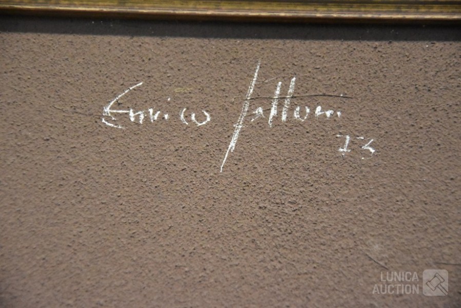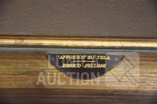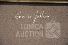 fresco techniek op doek, afkomstig van tentoonstelling Galleria Pomposiana Ferrara, 1976. Ingelijst, afmeting 88x118 cm!