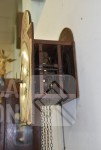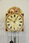 Barst in wijzerplaat. Uurwerk zit in houten kast. Werkend echter klok valt steeds stil. Afmeting wijzerplaat 25x35 cm.