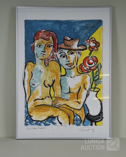 acrylverf op papier, ingelijst, achter glas. Afmeting (bxh) 50x70 cm. Gesigneerd R.O.