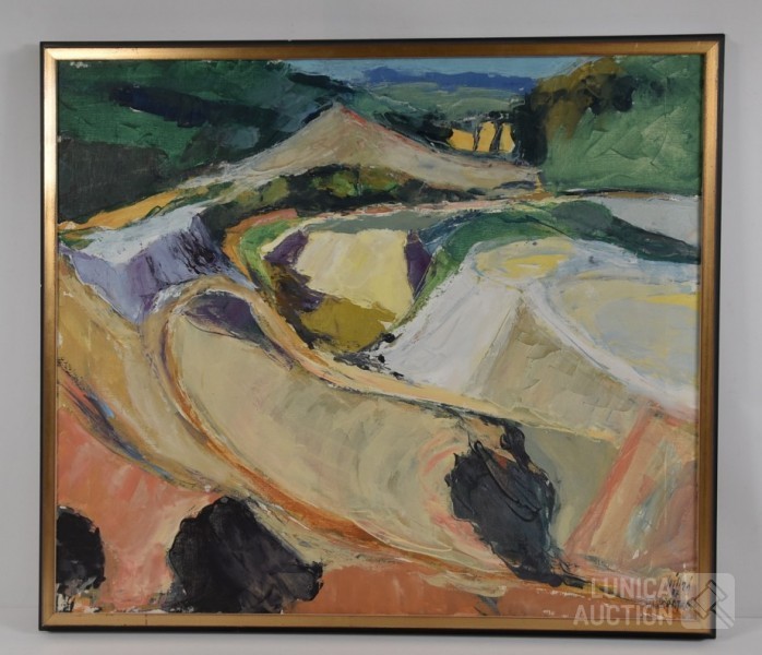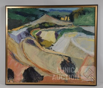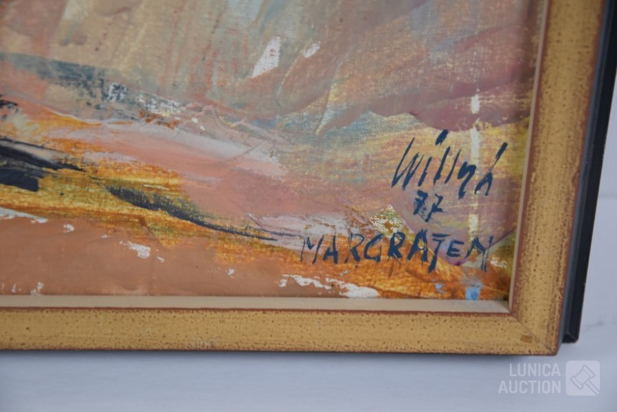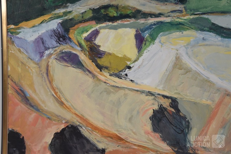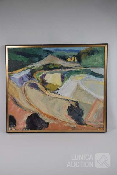 Olieverf op doek, ingelijst, afmeting 80x70 cm. Gesigneerd R.O.