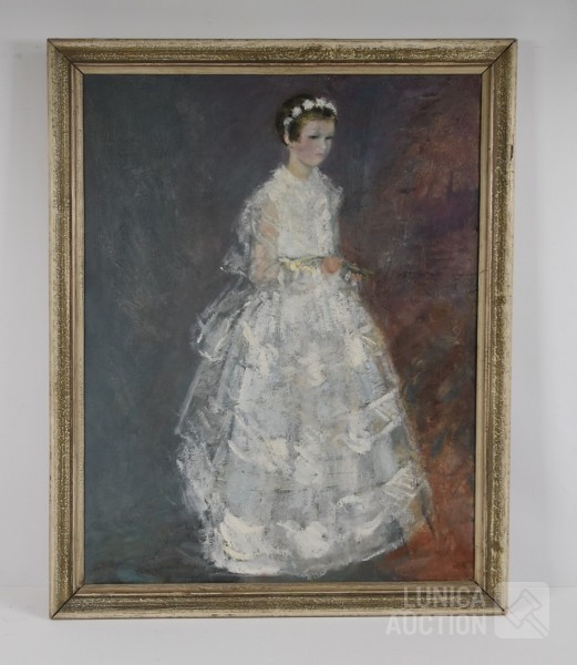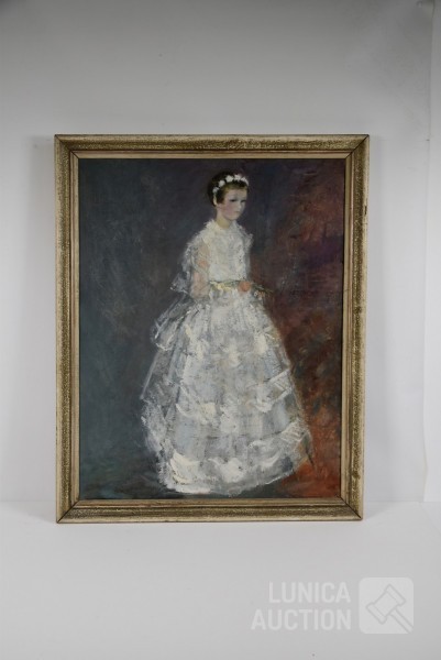 Olieverf op doek, ingelijst, afmeting 67x85 cm. Gesigneerd op achterzijde