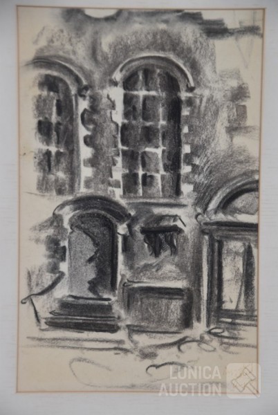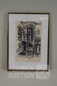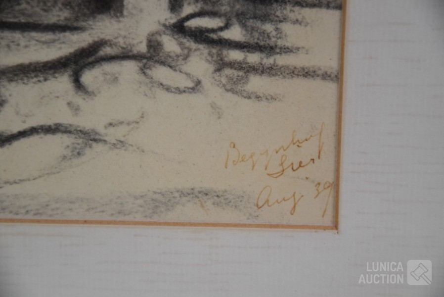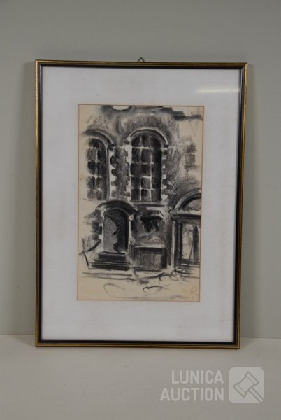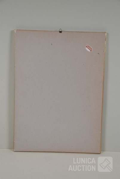 Op papier, ingelijst, achter glas. Afmeting 35x47 cm. Gesigneerd R.O.