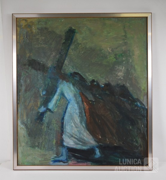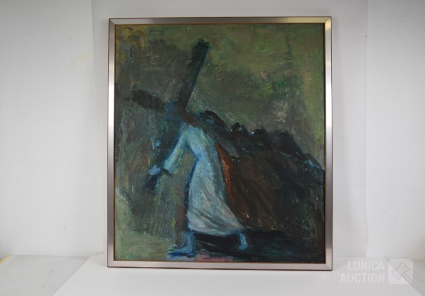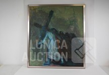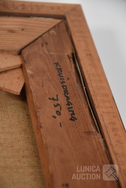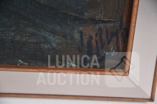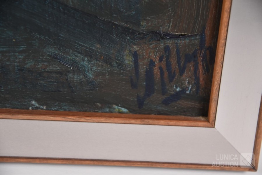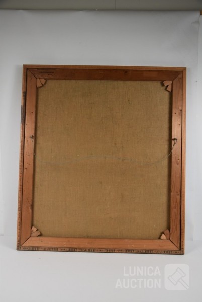 Olieverf op doek, ingelijst, afmeting 80x90 cm. Gesigneerd R.O.