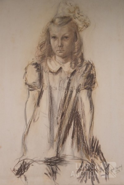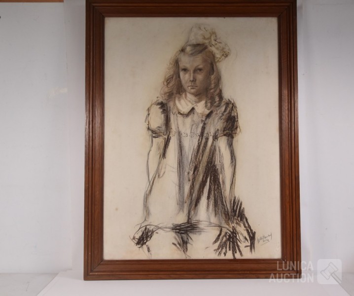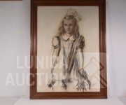 pastelkrijt op papier, ingelijst, achter glas. Afmeting 87x115 cm! Gesigneerd R.O.