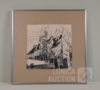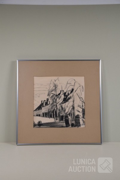 Pastelkrijt op papier, ingelijst, achter glas, afmeting 50x50 cm. Gesigneerd R.O.