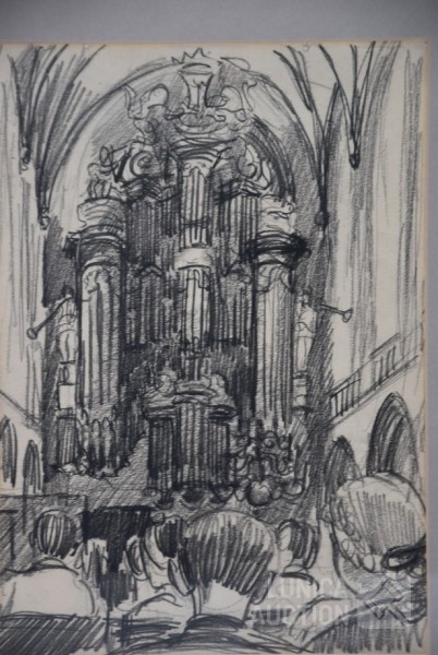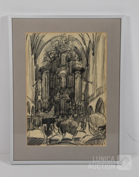 Pastelkrijt op papier, ingelijst, achter glas, afmeting 30x40 cm.