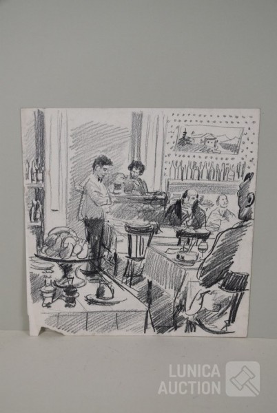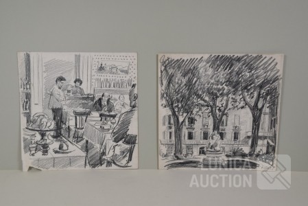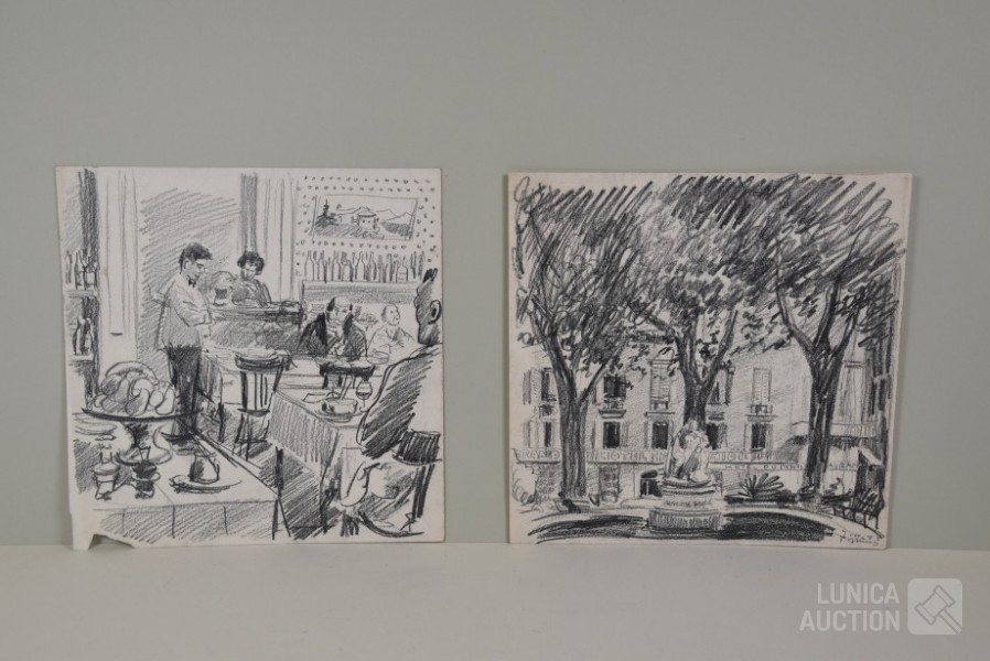 Op papier, niet ingelijst, afmeting 30x30 cm. Gesigneerd R.O.
