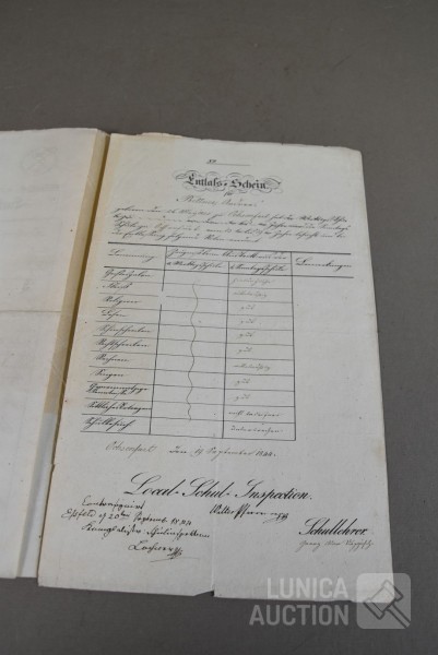 Betreft: "Rettner's Miltärenentlassung in Bayern mit 2 Zeugnissen: 1) Lehrbrief 1843, 2) Schul-Entlas-Schein